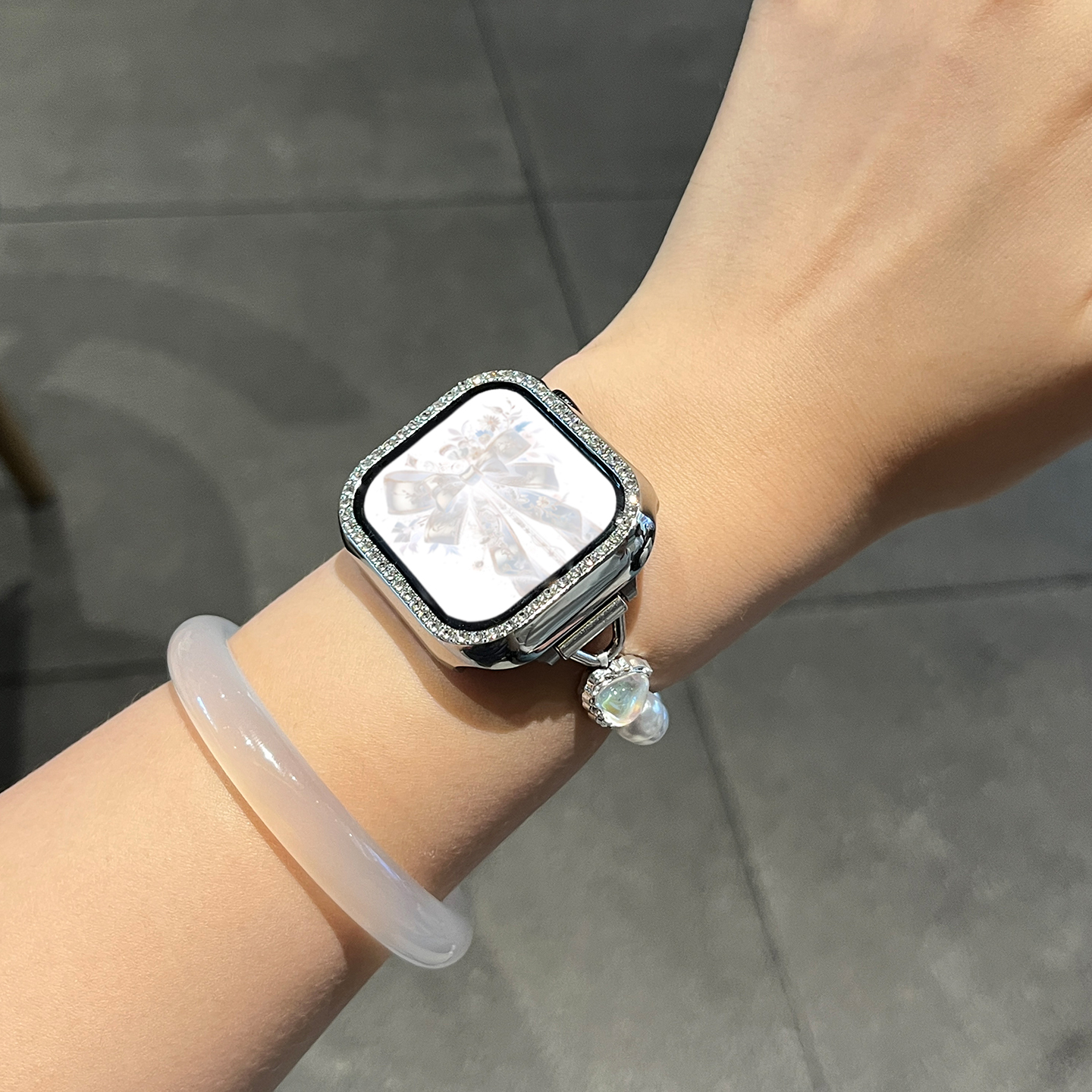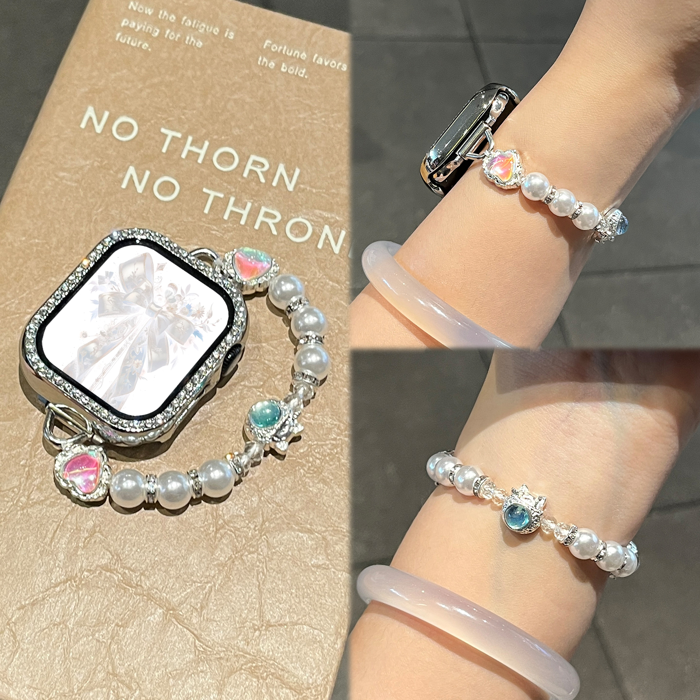 s876高级JY夏季 智能腕表AppleWatch男女款 专用se s10串珠series9新款 适用于苹果手表表带s11爱心珍珠白iwatch
