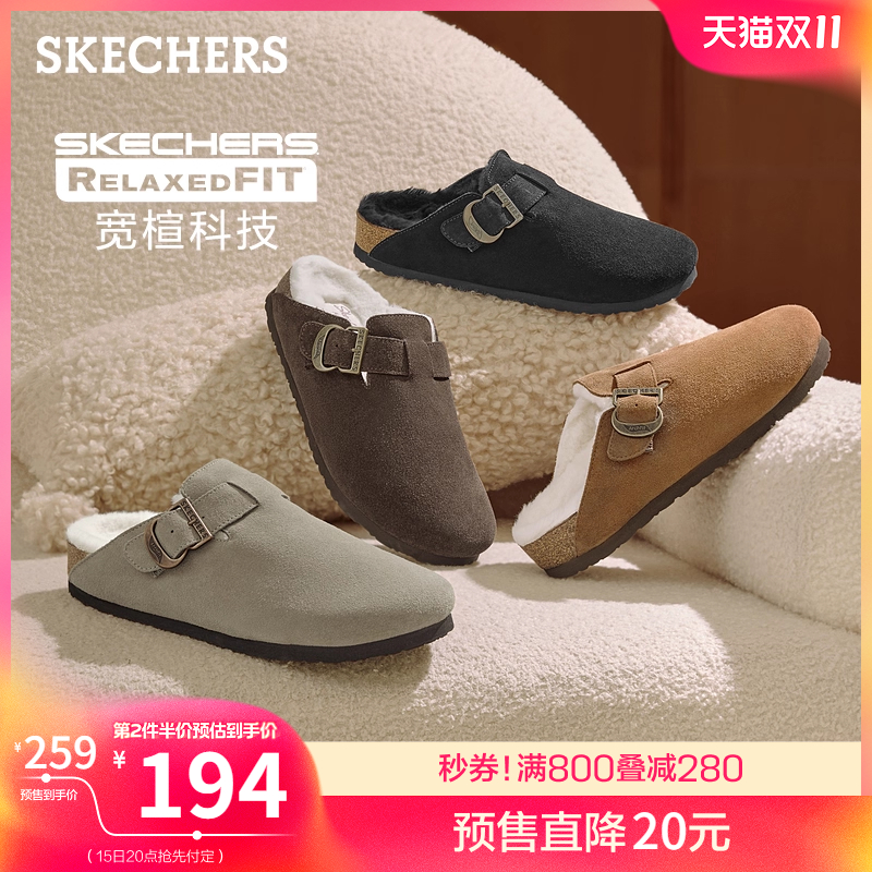 2025新款 女鞋 宽楦鞋 双11预售 休闲鞋 冬季 保暖棉拖鞋 斯凯奇勃肯鞋