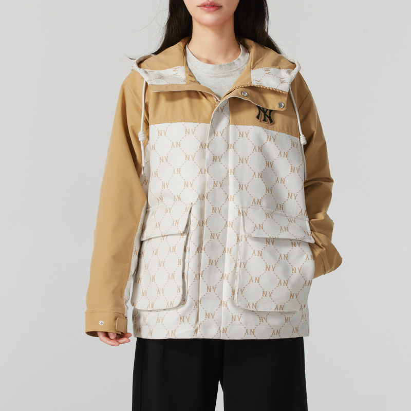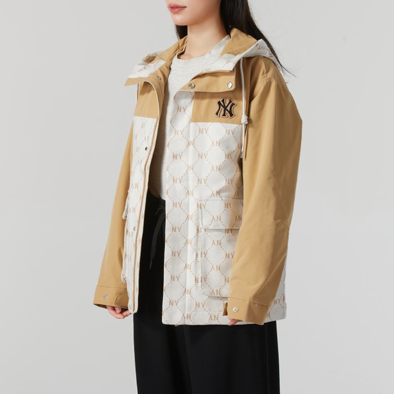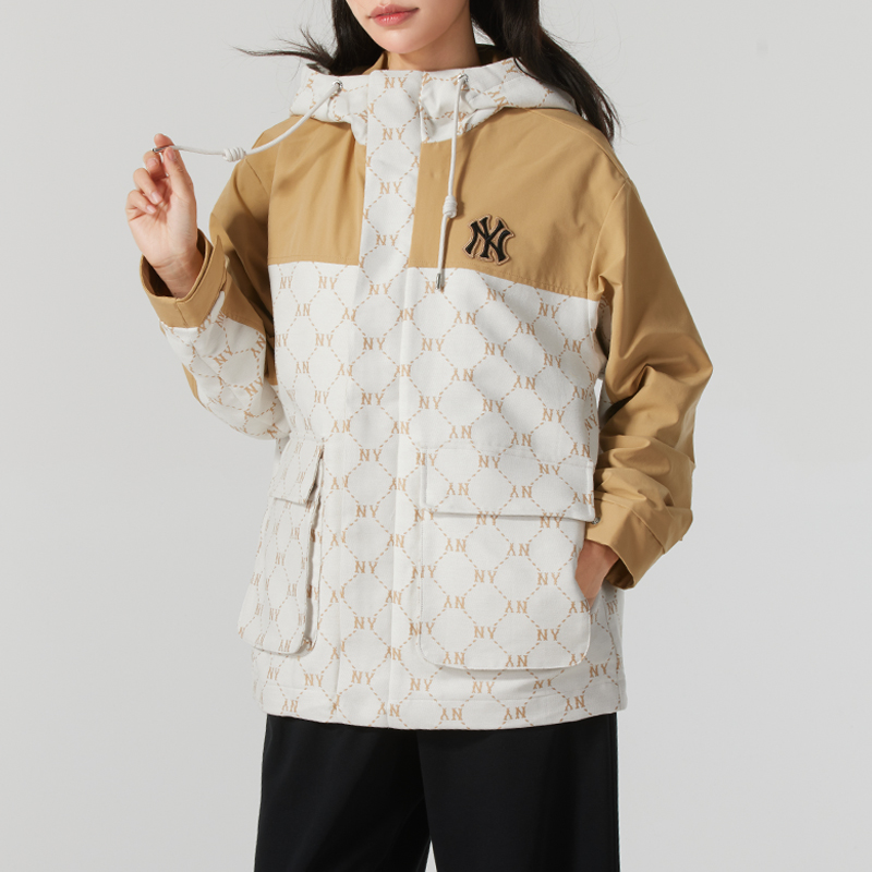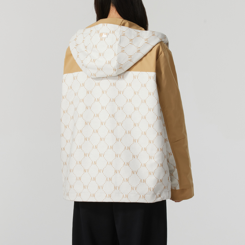 MLB男女情侣款 钻石老花夹克复古休闲连帽上衣舒适梭织运动外套