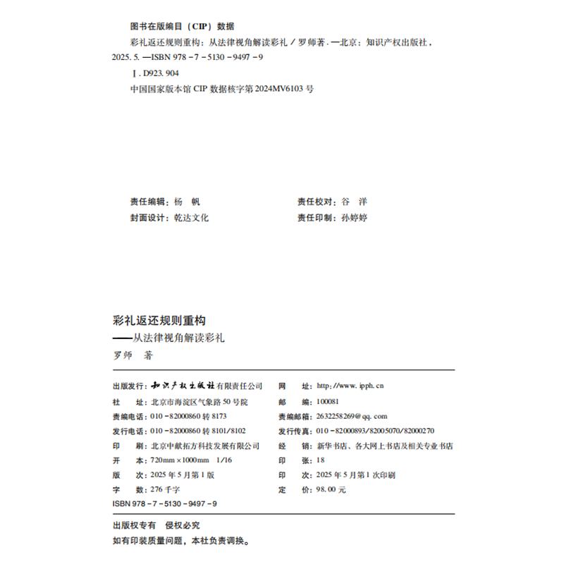 罗师 从法律视角解读彩礼 著 知识产权出版 9787513094979 2025新书 社 彩礼返还规则重构