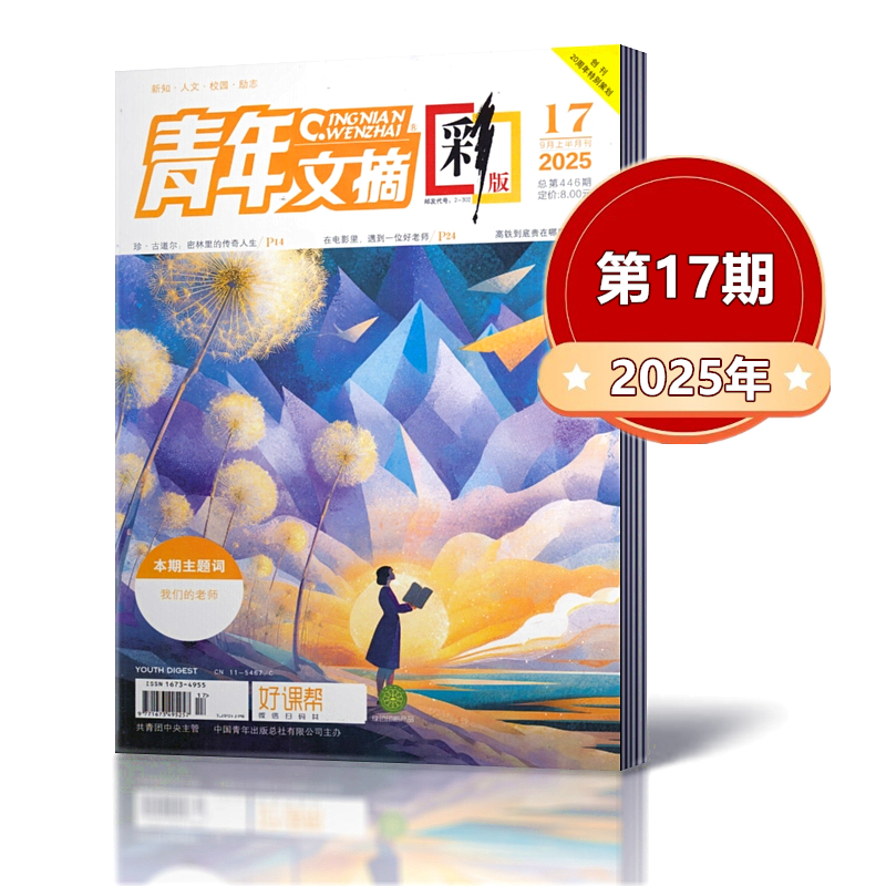 青年文摘彩版 非合订本 文学文摘散文书期期刊 17期2024年 肖战 孙颖莎内页 2023 杂志2025年第1 2025年订阅 2022年