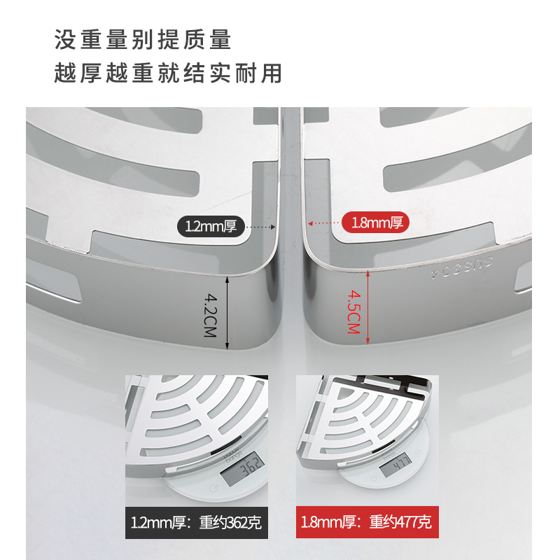 灰色免钉304不锈钢浴室三角篮四方置物架 卫生间厕所洗澡壁挂收纳