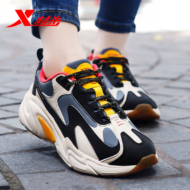 休闲鞋 新款 增高潮鞋 特步女鞋 老爹鞋 春秋新款 ins皮面正品 女 运动鞋