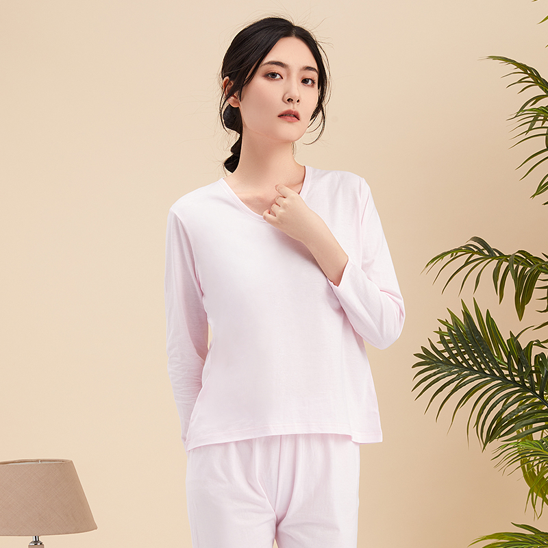 春秋季 打底衫 42支秋蝉纯棉长袖 柔软透气秋衣秋裤 衣 薄款 利工民女款