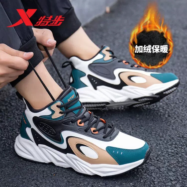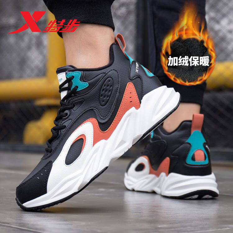 男鞋 子软弹平底鞋 厚底增高情侣休闲鞋 女鞋 革面 运动鞋 特步秋冬板鞋