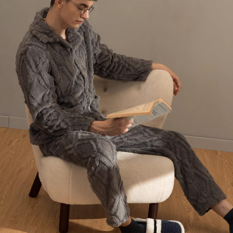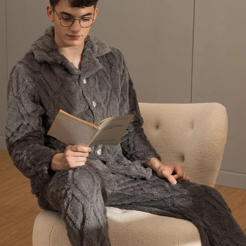 大码 春秋开衫 女士家居服 加厚珊瑚绒睡衣女冬法兰绒加绒套装 秋冬季