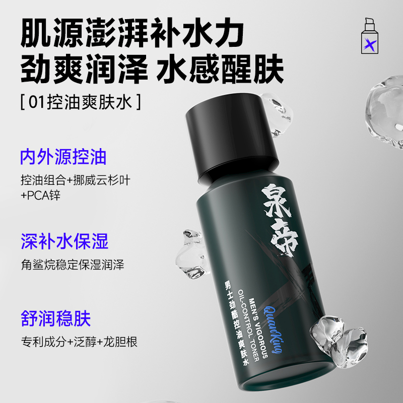 面部护理quan帝 清爽补水控油敛净油光盈润保湿 泉帝男士 水乳套装