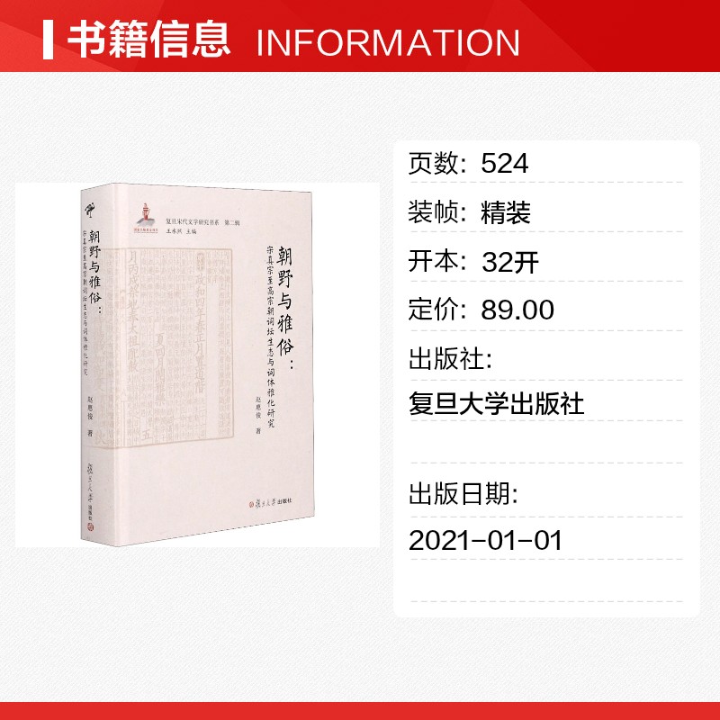 著 王水照 新华书店正版 宋真宗至高宗朝词坛生态与词体雅化研究 图书籍 文学评论与研究文学 赵惠俊 文学理论 朝野与雅俗 编
