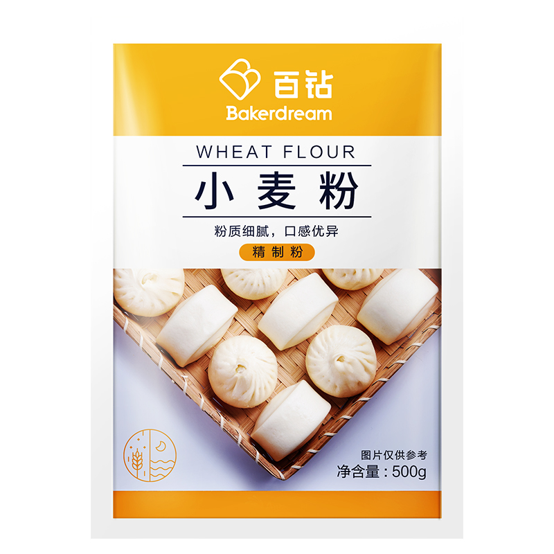 百钻中筋面粉小麦粉家用自制广式 月饼馒头包子白面粉烘焙原料500g