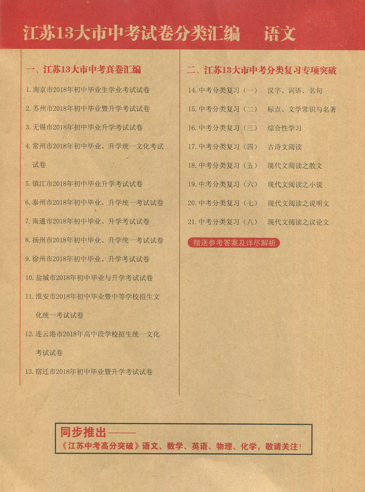 2018真题模拟精选分类复习 江苏中考真卷汇编 初中升高中备考完全试卷 语文十三大市 2019超能学典江苏13大市中考试卷分类汇编