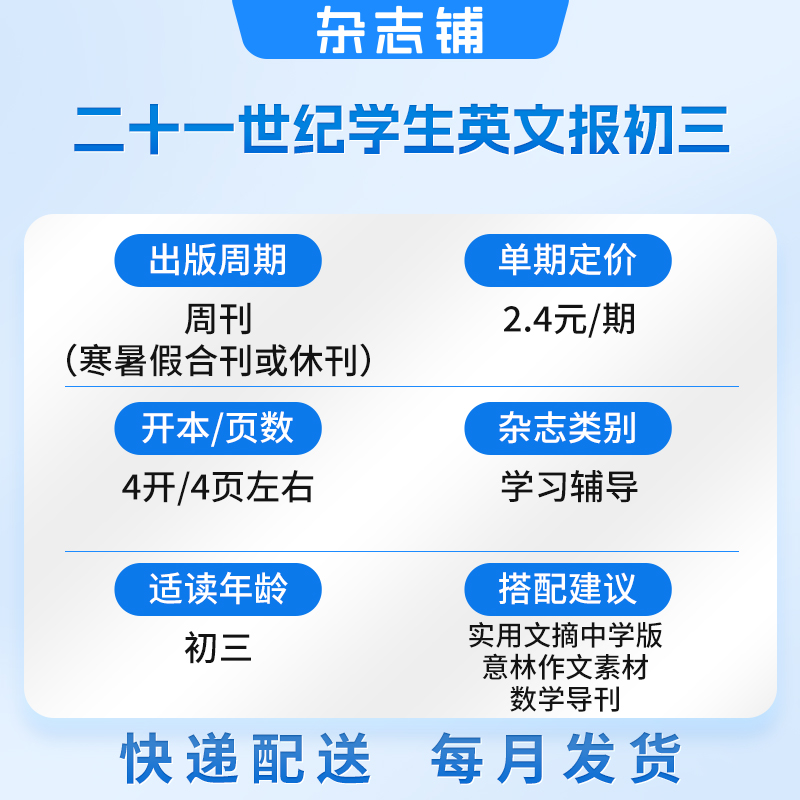 包邮 21世纪初中生教育性英语时事报刊 二十一世纪学生英文报初三杂志 1年共50期 杂志铺 2026年1月起订