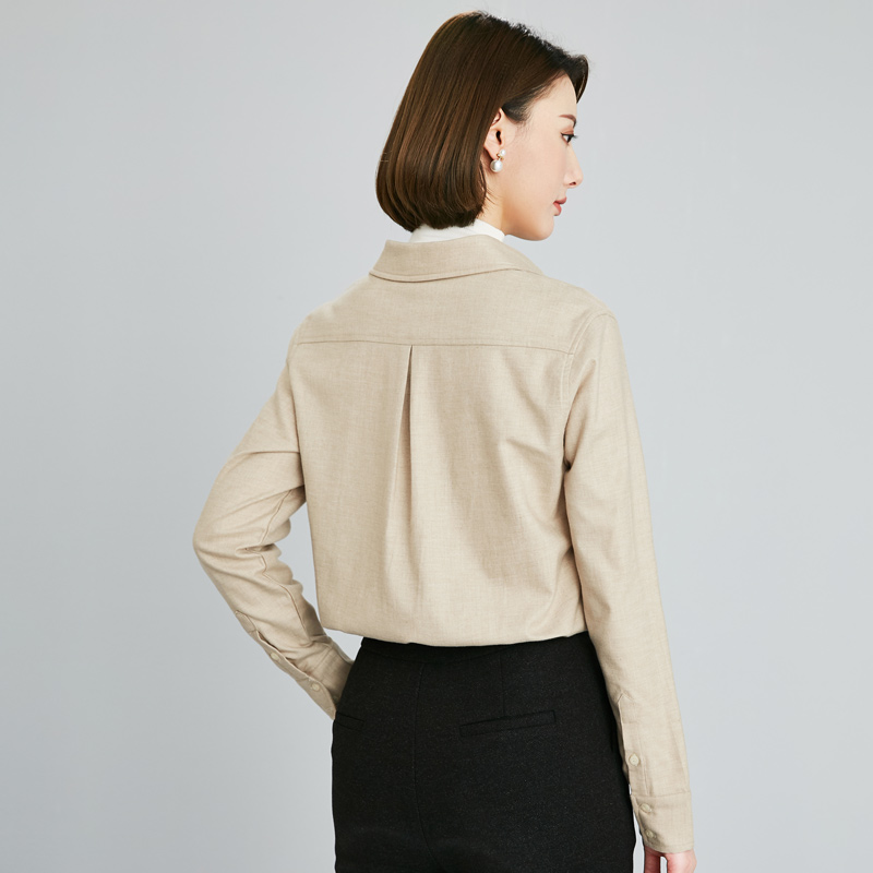 洋气时尚 杏色磨毛衬衫 气质别致衬衣职业装 春秋法式 上衣 女长袖