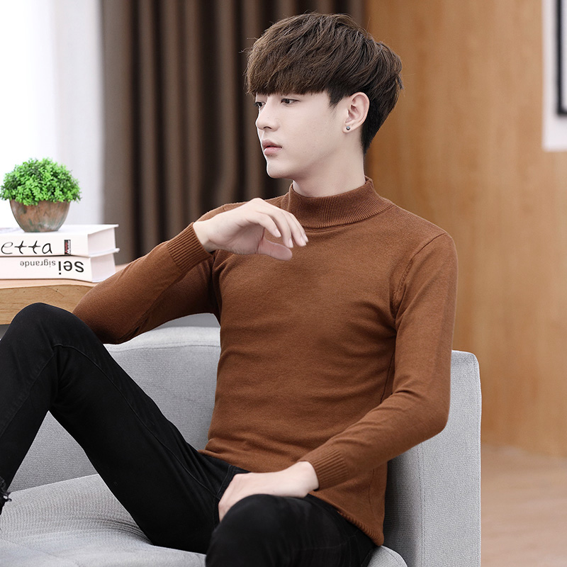 bdpowerup亨利领纯色毛衣男秋冬休闲宽松上衣巴恩风针织打底衫 男