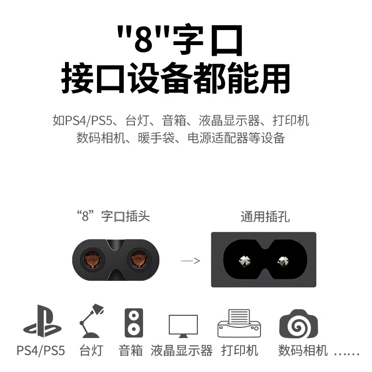 笔记本电源线电脑适配器梅花口梅花孔充电器电源线8字口两孔充电器线三插头电源线插座连接线国标电源线1.2米