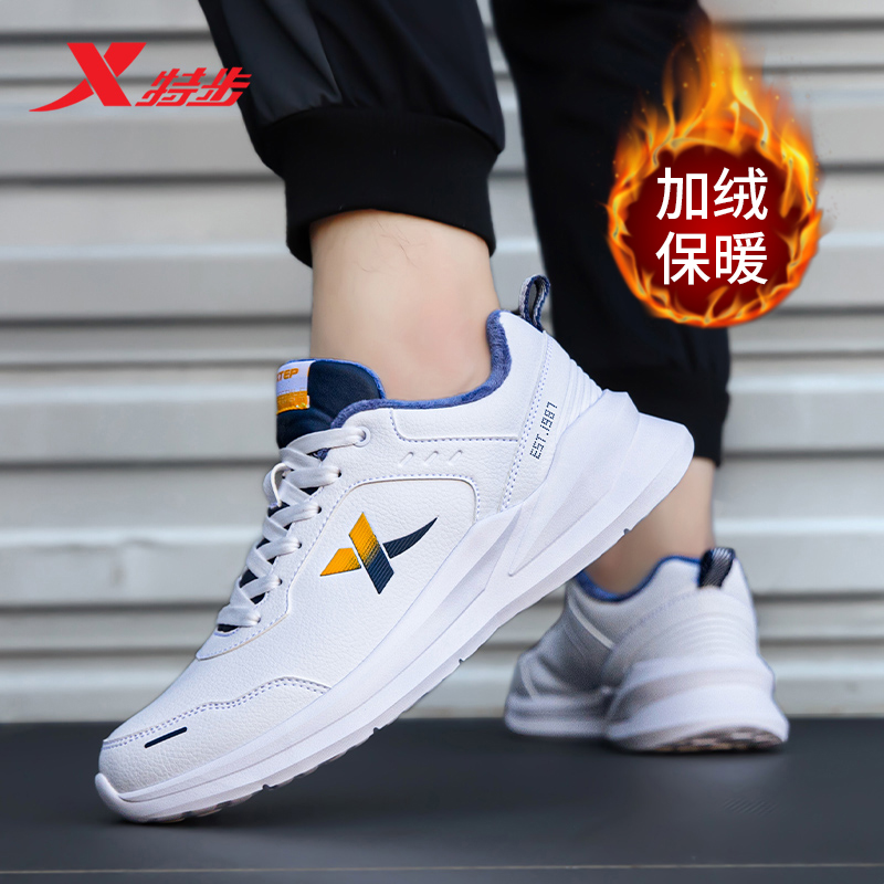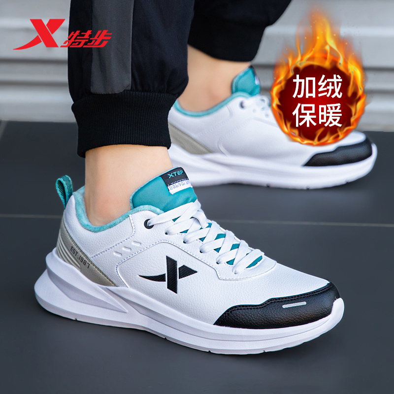 男秋季 子黑色运动鞋 跑步鞋 网面透气减震鞋 皮面防泼水男鞋 特步跑鞋