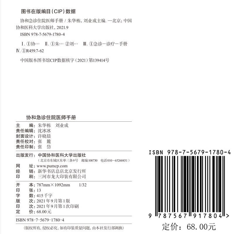 现货 社9787567917804 协和急诊住院医师手册朱华栋刘业成主编中国协和医科大学出版