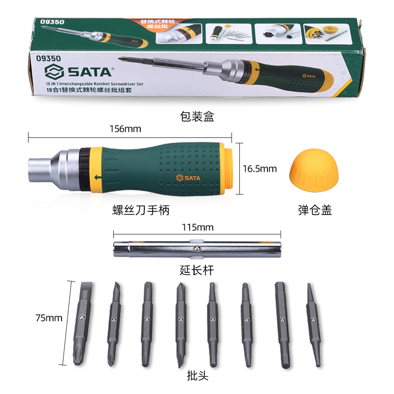世达19合1替换式 棘轮螺丝批组套十字一字梅花六角多功能工具09350