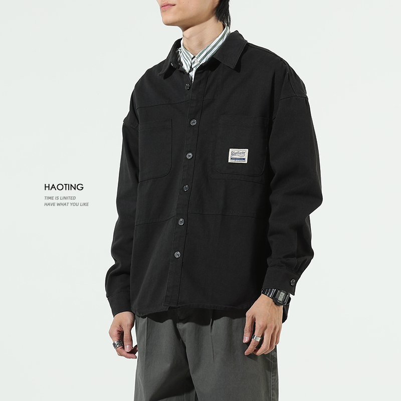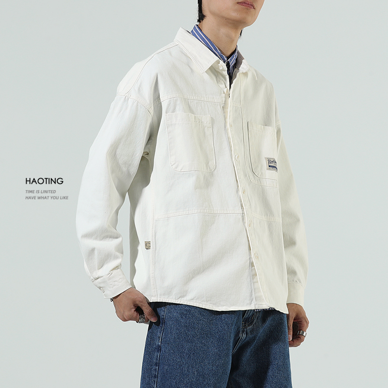 牛仔衣 工装 高级感防褪色原色水洗牛仔外套男宽松大码 翻领夹克新款