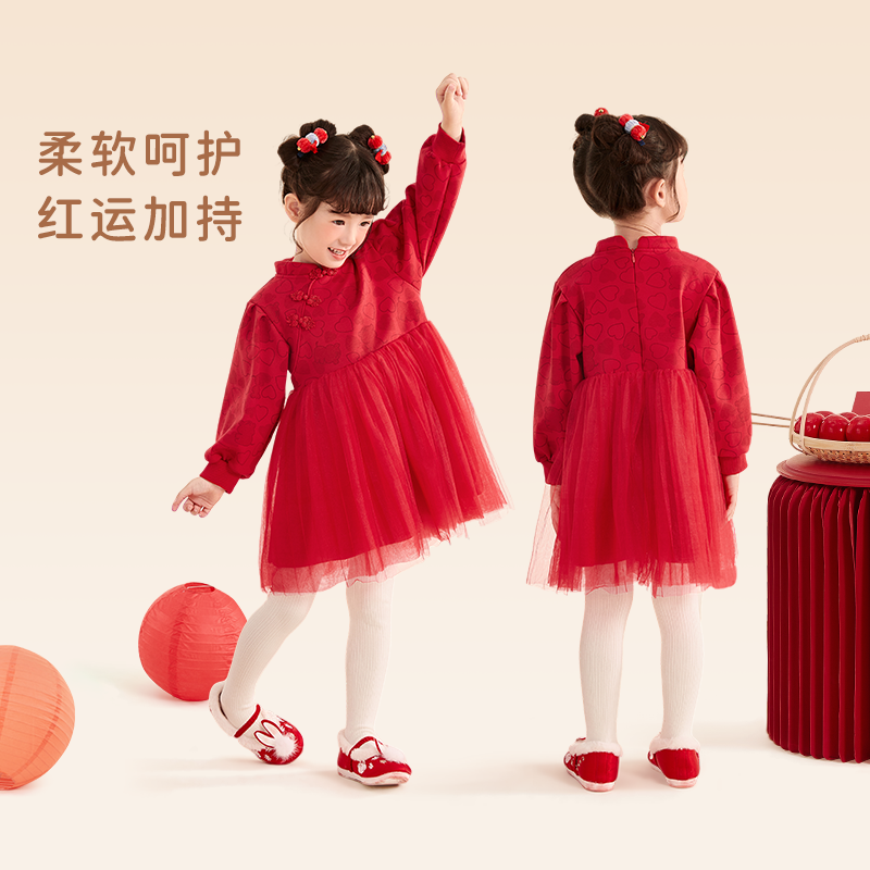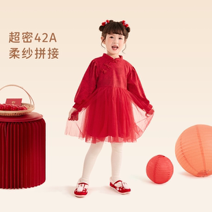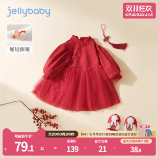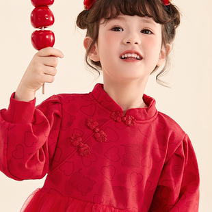 女童红色汉服儿童喜庆抓周礼服唐装 旗袍连衣裙周岁春秋女宝宝衣服