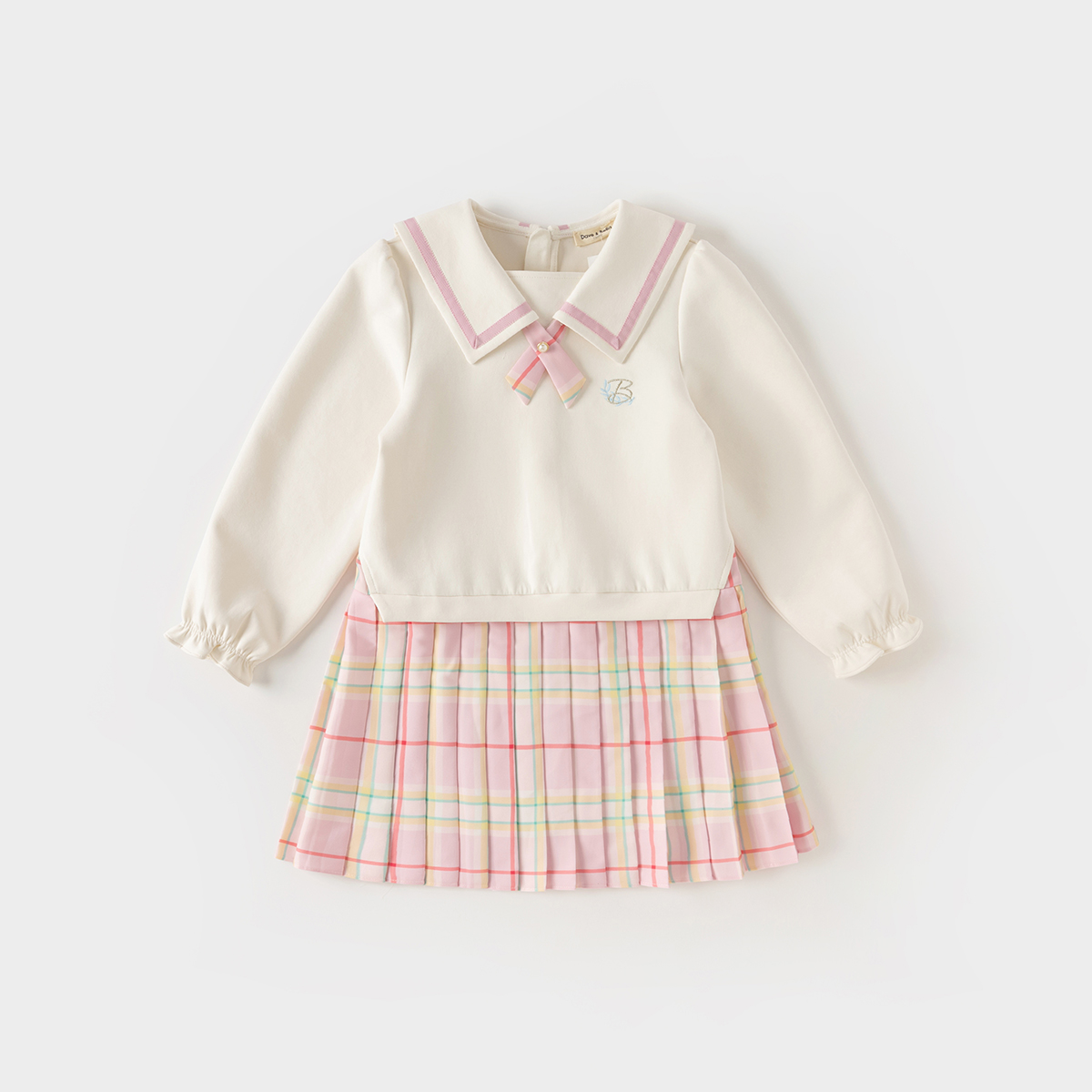 下摆珠片花朵裙子 新款 乐町学院风假两件荷叶边连衣裙女装 2025秋季