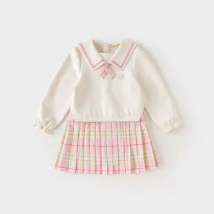裙秋季 衬衫 可露丽穿搭格纹拼接连衣裙 漂亮系带掐腰假两件式 KEIKO