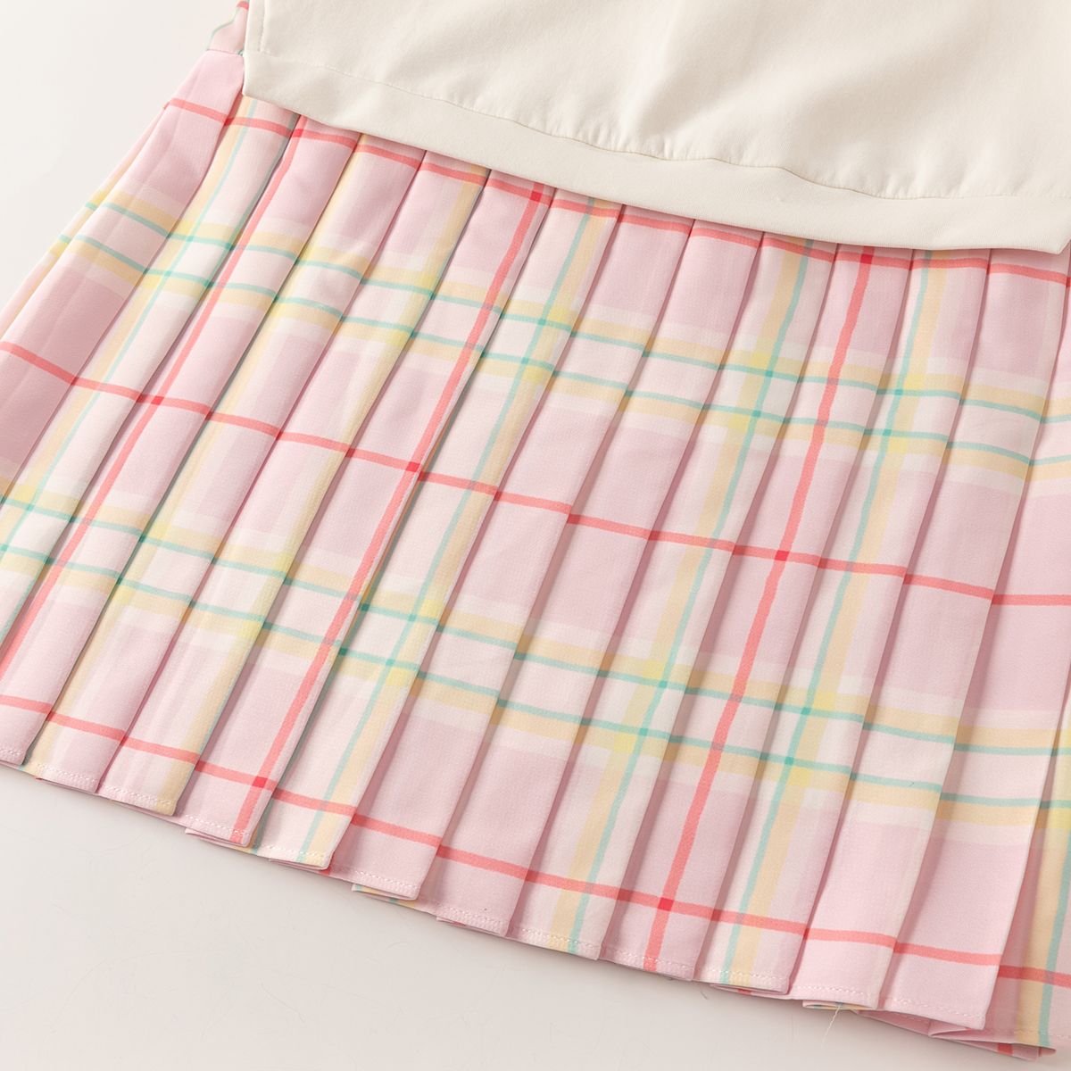 omont蛋挞家 设计感收腰显瘦百褶裙短裙 复古格纹一字领连衣裙夏季