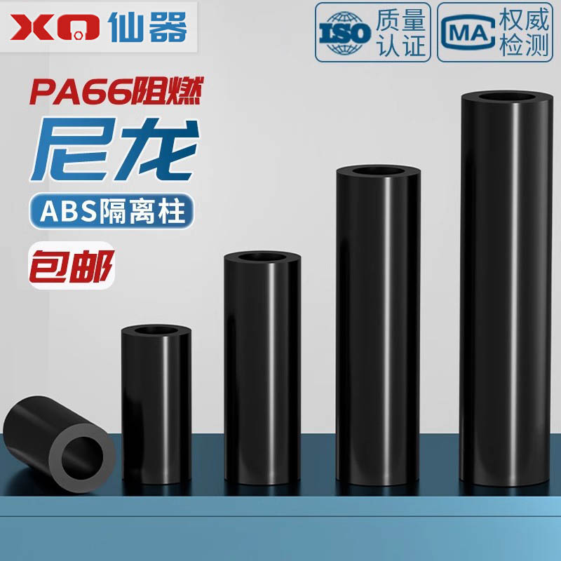 黑色ABS隔离柱尼龙直通垫柱套管圆体间隔垫圈MM2M3M4M5M6M8M10M12