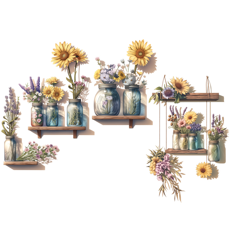小清新植物向日葵花瓶简约墙壁装 饰贴纸自粘卧室寝室床头遮丑挡洞