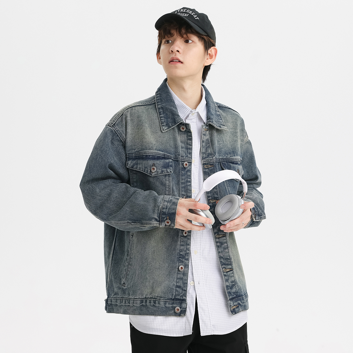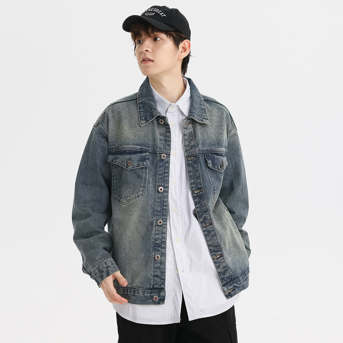 复古夹克水洗做旧上衣男女同款 美式 新款 森马黑色牛仔外套2025春季