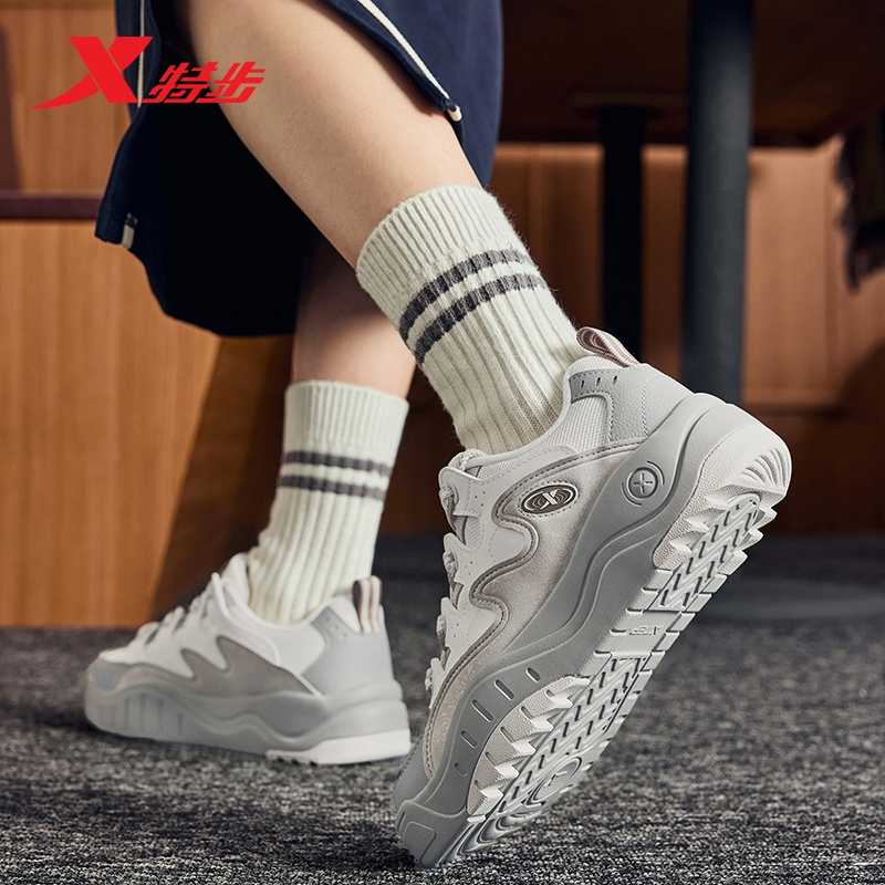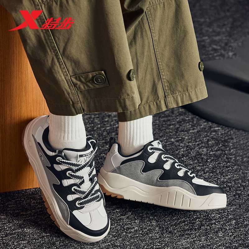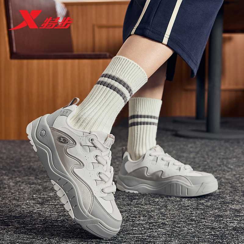 板鞋 男鞋 革面休闲鞋 多巴胺色系透气男士 特步海浪鞋 运动鞋 秋冬新款
