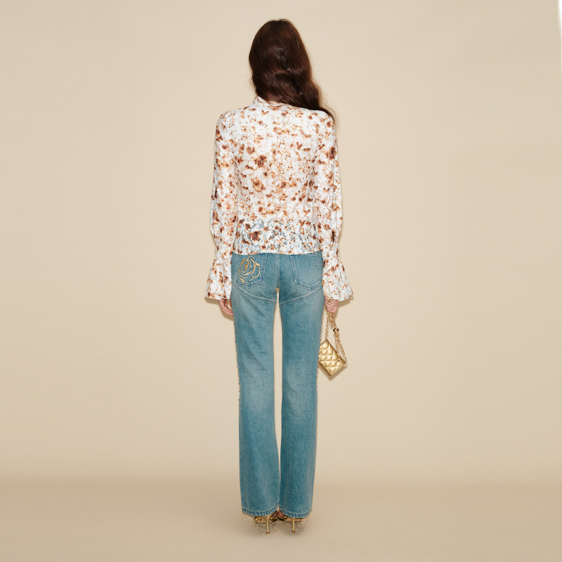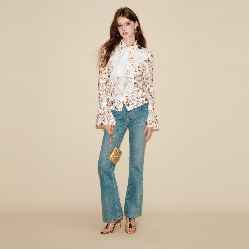 RUISHI芮时 女上衣秋 2ways可拆立领时髦显瘦通勤设计感不易皱衬衫
