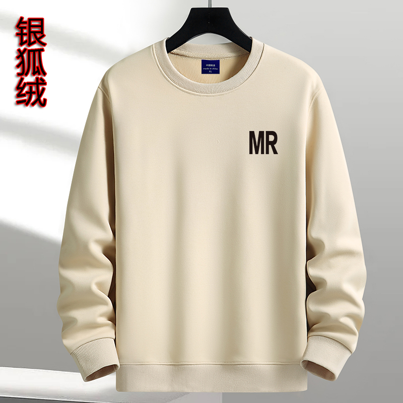 宽松休闲潮牌男装 保暖长袖 上衣 简约冬季 青少年银狐绒圆领卫衣时尚