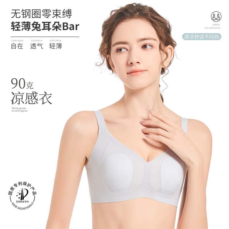 兔耳朵无钢圈超薄文胸吊带背心女大胸显小收副乳抹胸内衣冰丝无痕