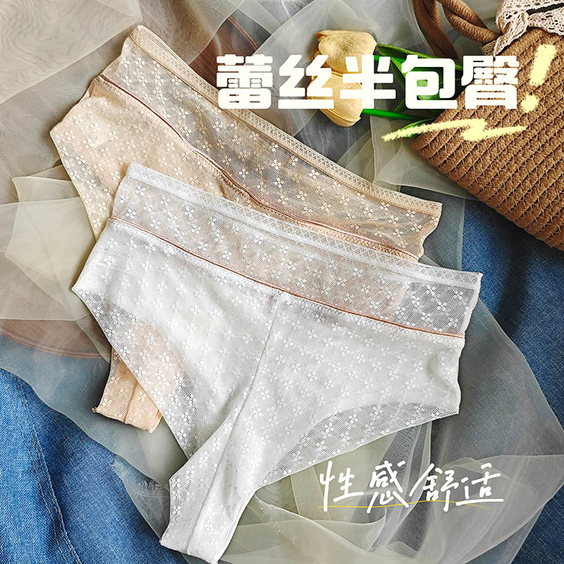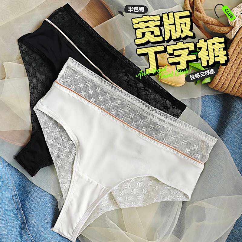 翘臀无痕半包臀内裤 欧美宽版 性感蕾丝薄款 中高腰 舒适透气 丁字裤