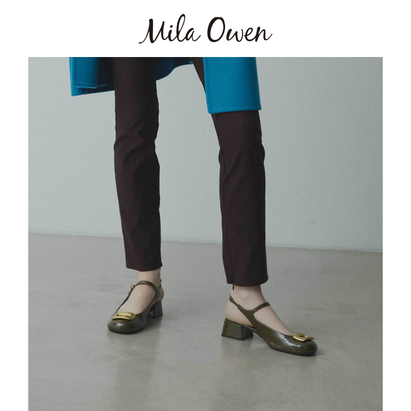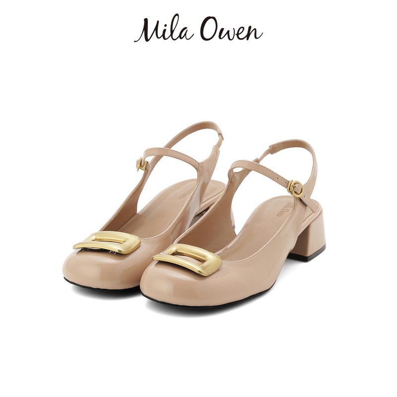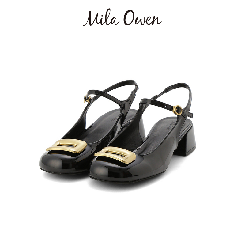 Mila 09WGS244520 Owen秋冬复古甜美金属方扣露跟高跟凉鞋