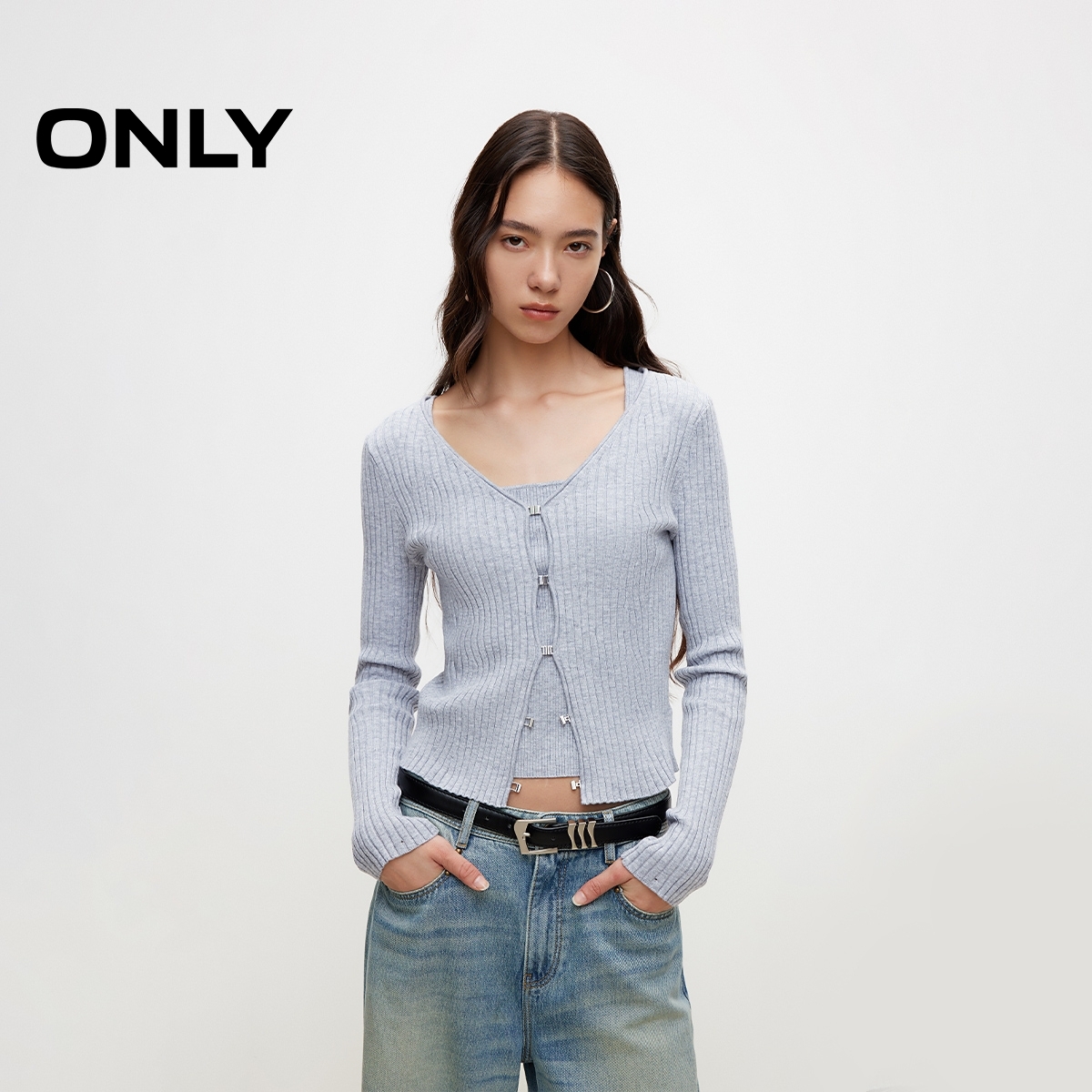针织衫 条纹短袖 长袖 开衫 毛衣外套 RARN2025秋装 两件套圆领修身 新款