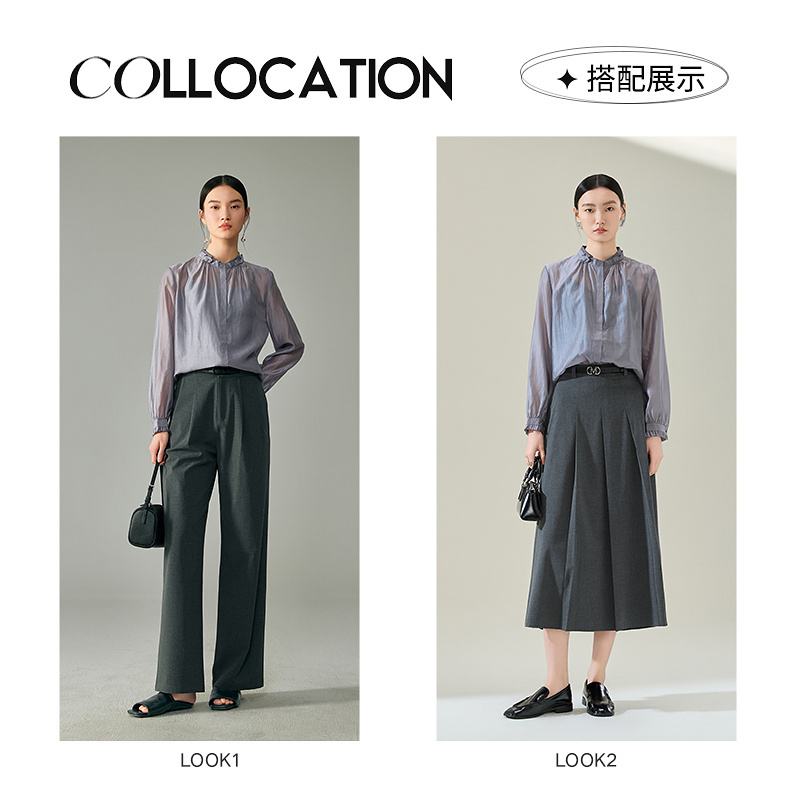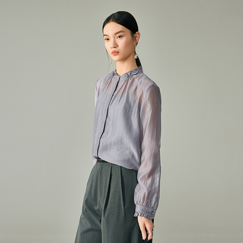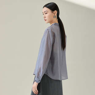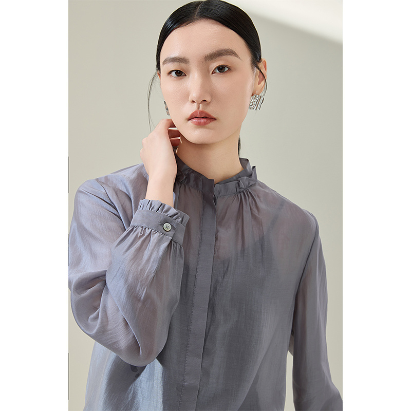班尼路S&K系列蓝色冰丝抗皱衬衫 防晒宽松衬衣女士免烫上衣Q 女夏季