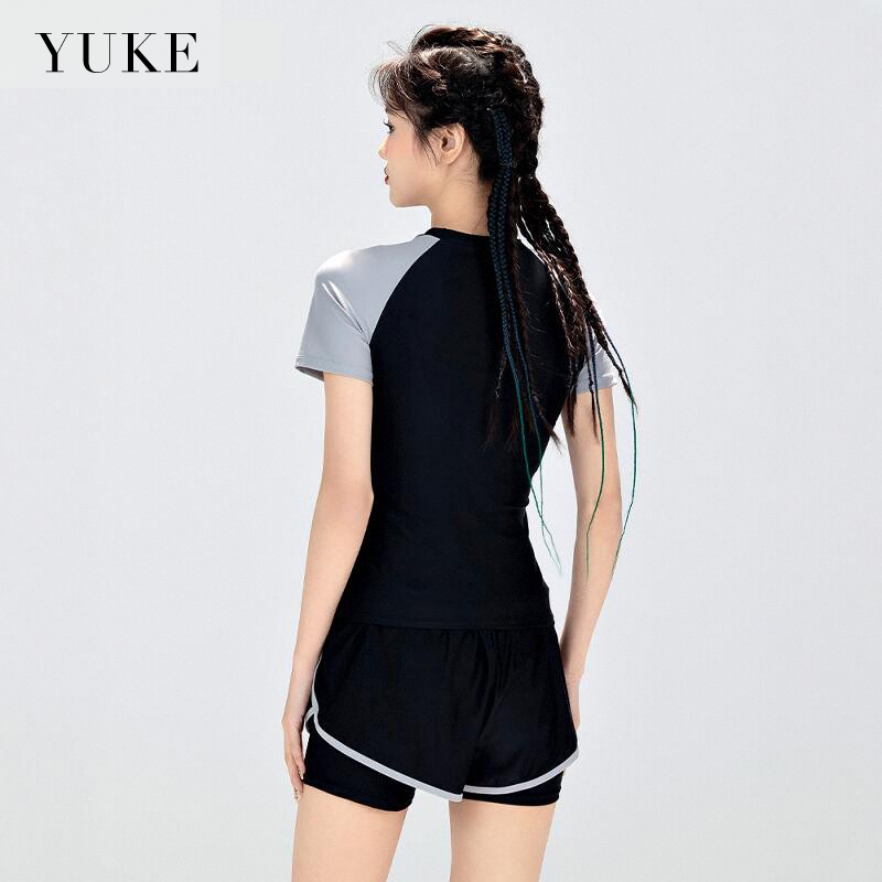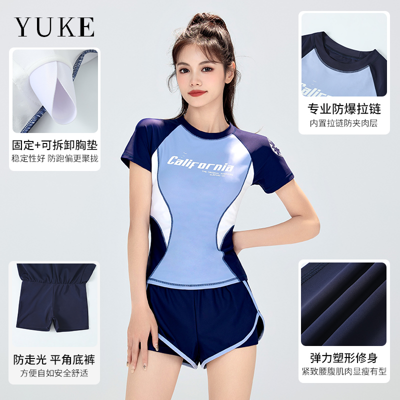 套装 女泳衣分体式 温泉保守 游泳防晒短袖 羽克女士分体泳衣2025新款