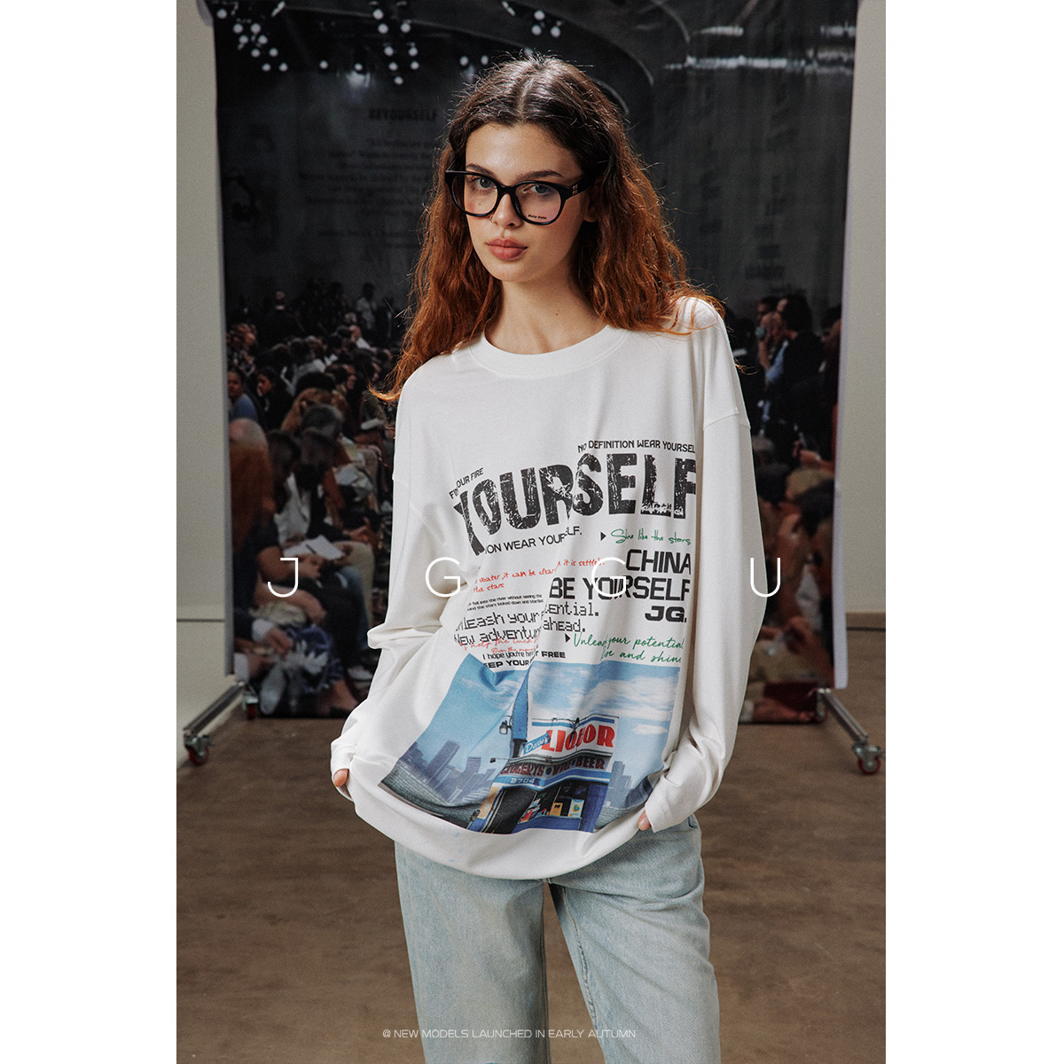修身 打底衫 百搭上衣服 T恤女春秋内搭短款 设计感小众正肩纯棉长袖