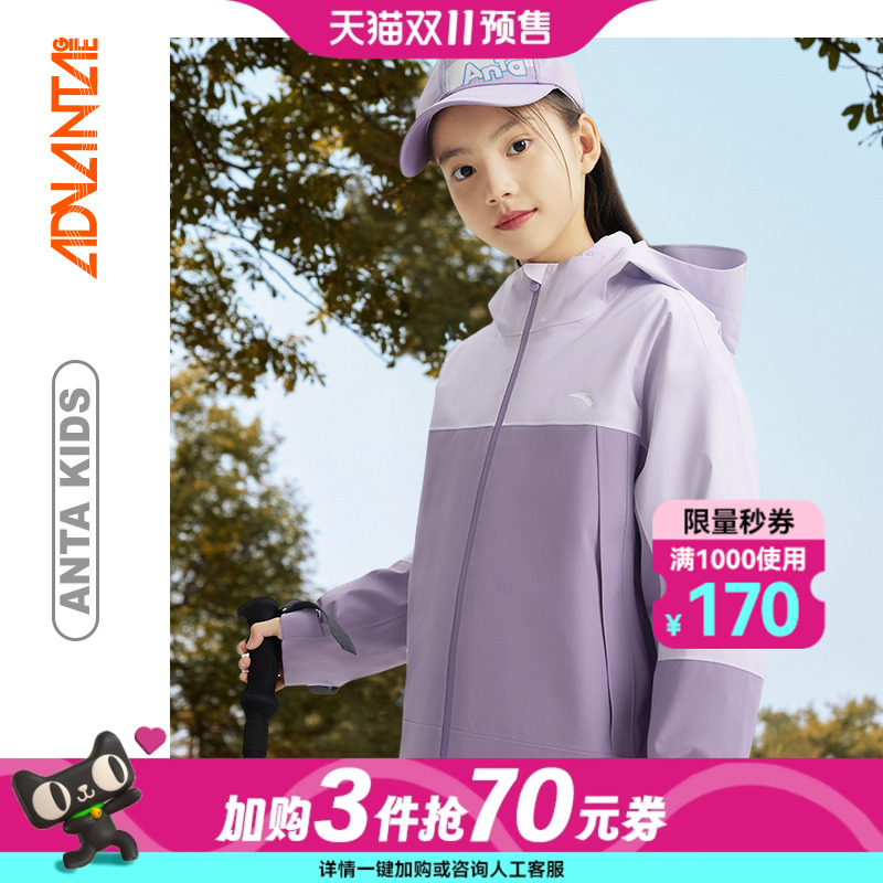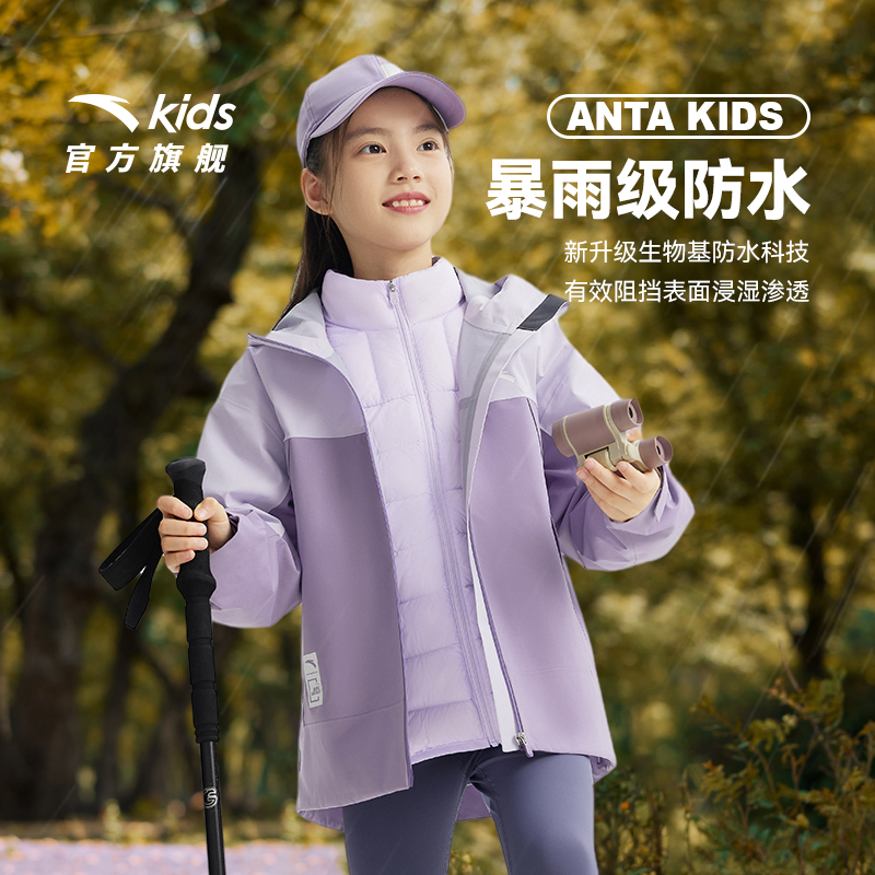 安踏儿童女童冲锋衣三合一羽绒两件套冬新款 保暖防风防水户外