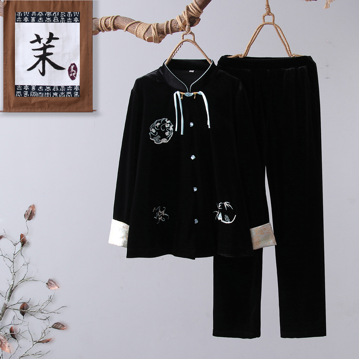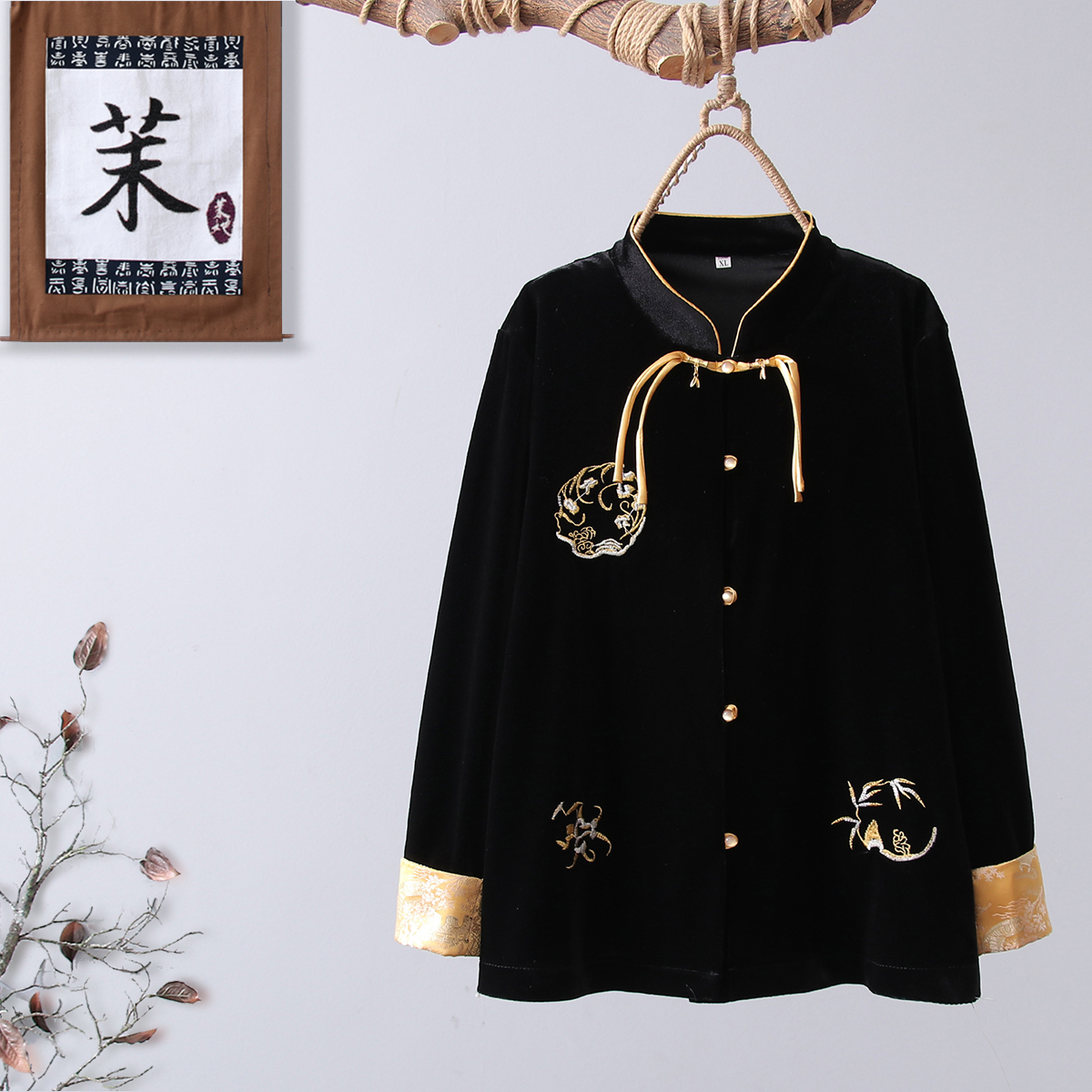 女2025新款 国风套装 洋气中老年人金丝绒两件套 新中式 中年妈妈秋装