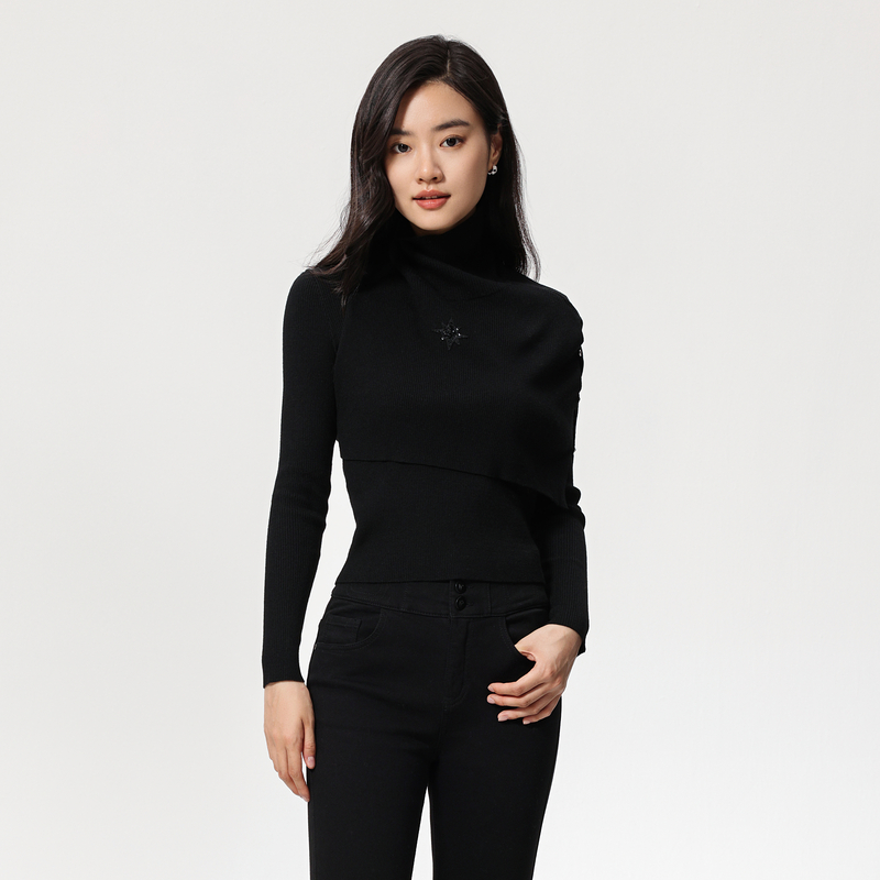 秋冬羊毛黑色内搭修身 2025新款 毛衣上衣 女半高领打底衫 猫人针织衫