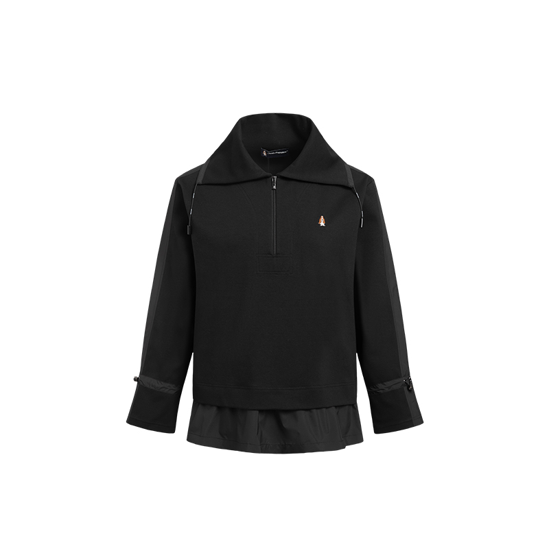 弹力花边假两件套头大翻领宽松长袖 暇步士秋季 卫衣女 双面织造