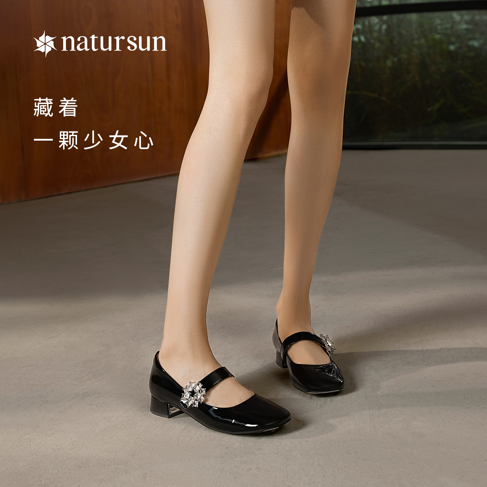 natursun法式 女鞋 玛丽珍鞋 小香风气质黑色单鞋 秋季 张予曦同款