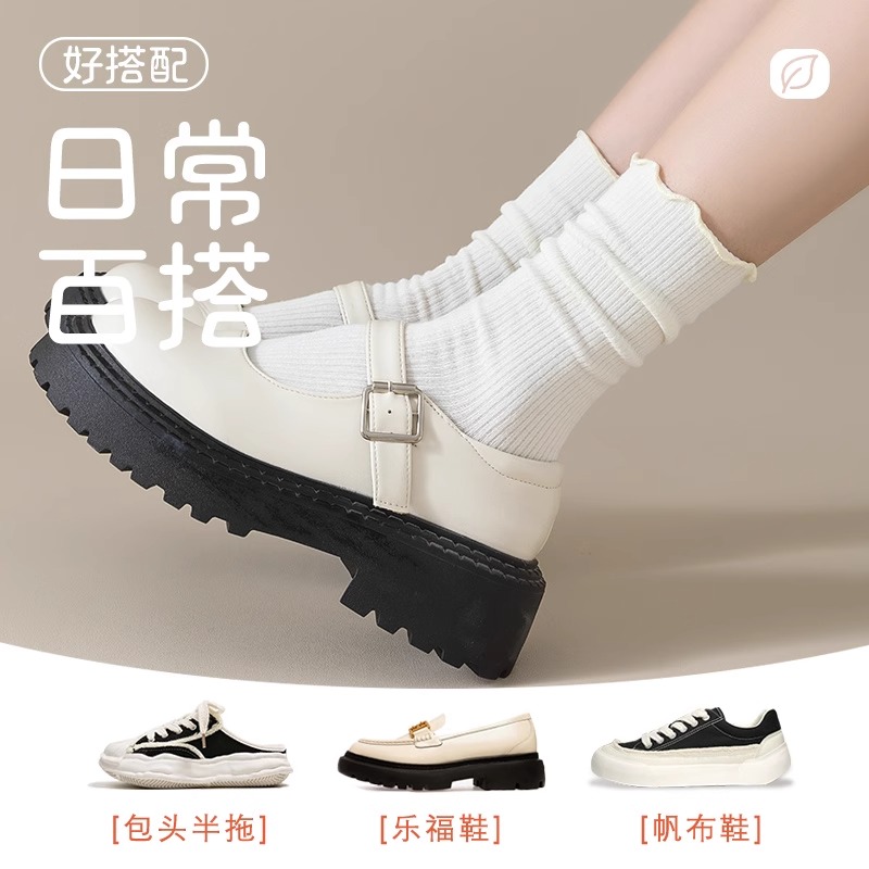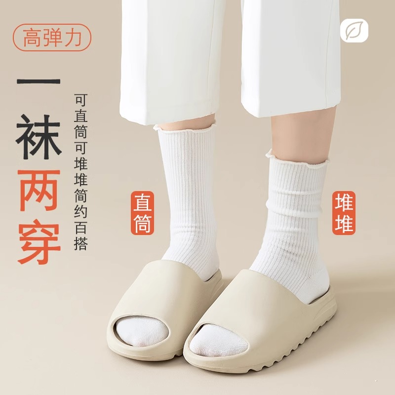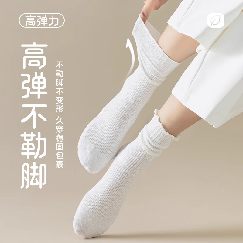 无骨袜子女春秋款 吸汗 中筒袜木耳花边堆堆袜ins潮白色长筒袜秋季