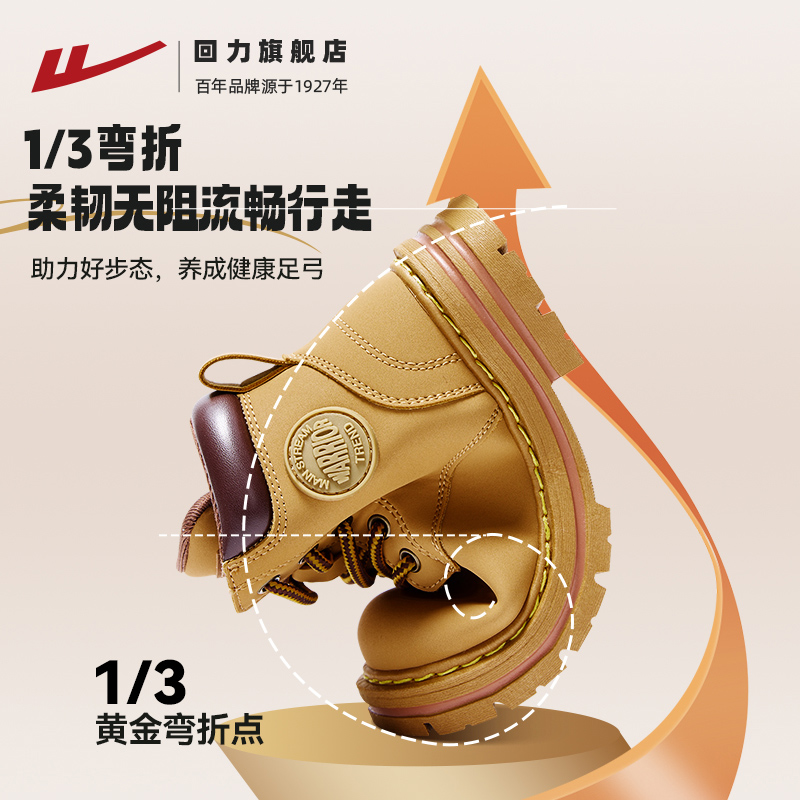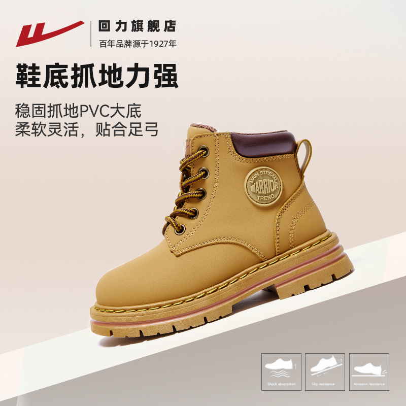 亲子户外登山鞋 工装 子男童靴子女童大黄靴 新款 回力儿童马丁靴秋季