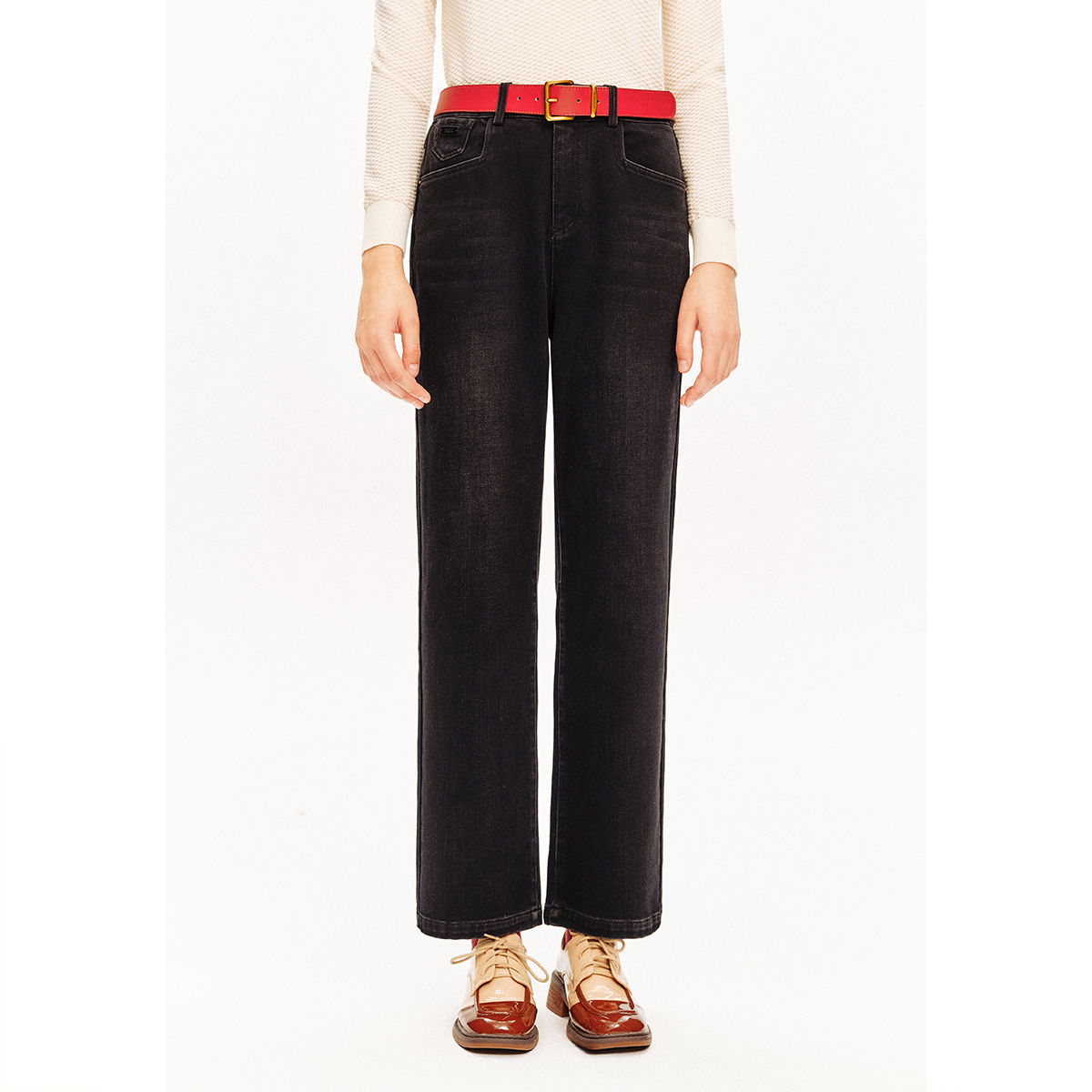 太平鸟高腰阔腿裤 牛仔外套 直筒牛仔裤