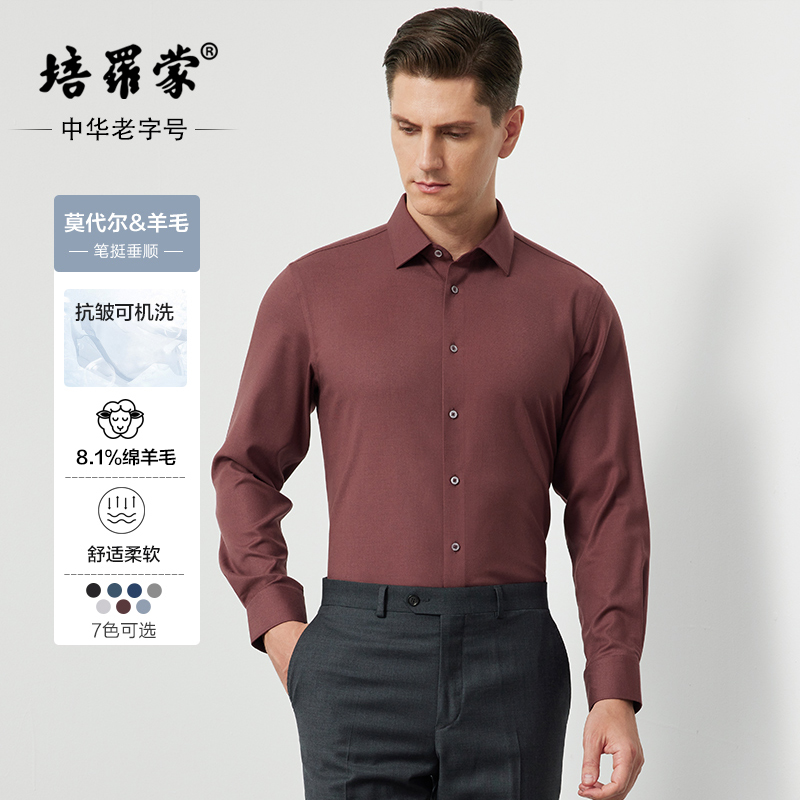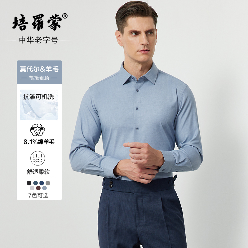 男士 新款 培罗蒙2025秋季 商务休闲弹力免烫衬衫 可机洗羊毛衬衣
