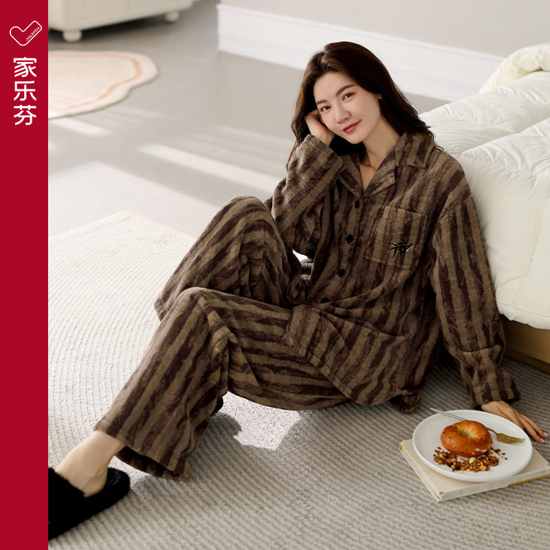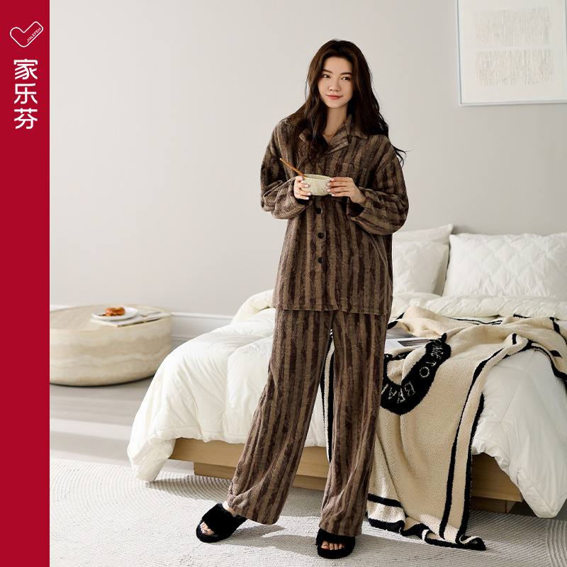 海岛绒可外穿家居服 简约薄款 睡衣女秋冬季 保暖珊瑚绒女士睡衣套装