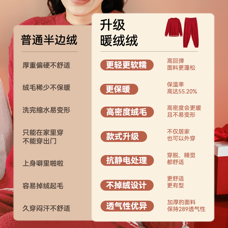 家居服套装 猫人暖绒绒睡衣新年红秋冬半边绒女男士 肖战同款